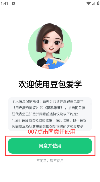 1、打开豆包爱学app,点击同意并使用,轻松找到“答疑”功能区域,汇聚了众多学霸和老师,随时准备解答你的疑惑。