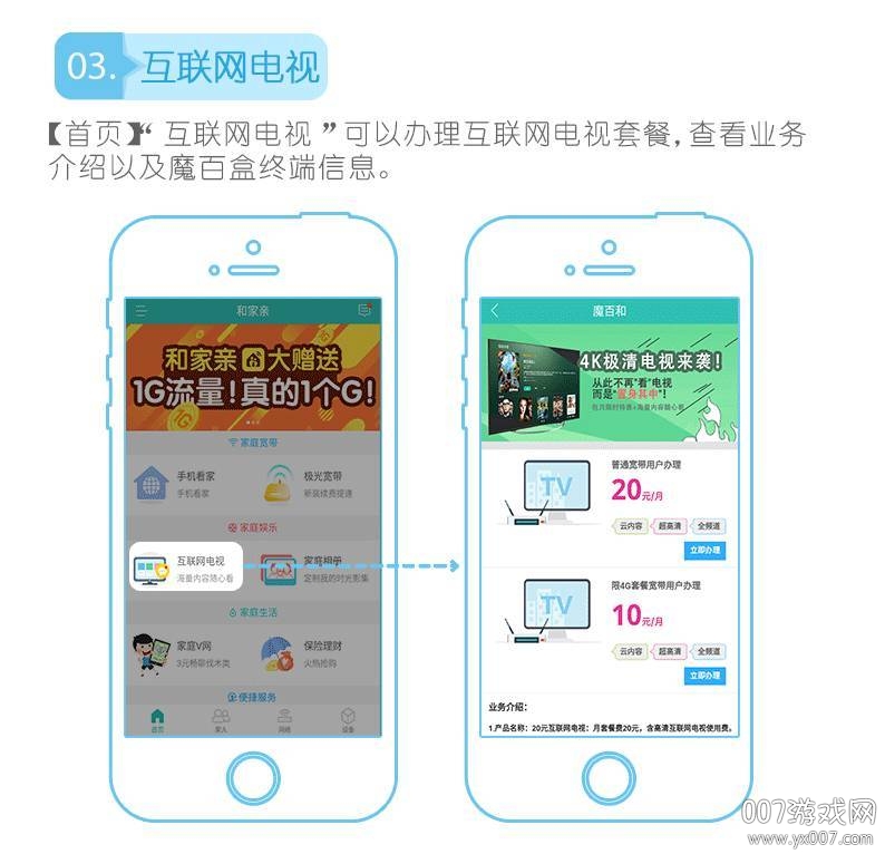 “和家亲”在智能家庭网关配套软件基础上实现网络管理、智能设备管理及业务办理功能,引入智能家居业务,并基于家庭统一账户整合家庭通信与流量,提供一站式数字家庭服务。