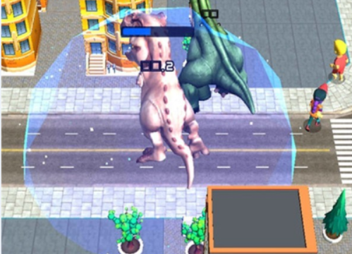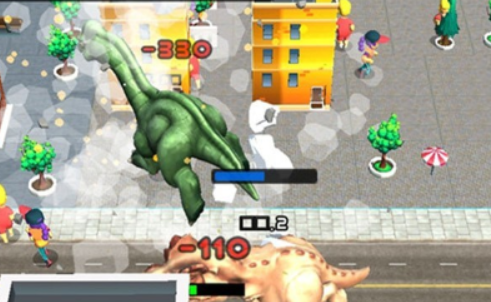 2、控制恐龙在城市中自由穿梭,获取能量消灭大量的敌人。
