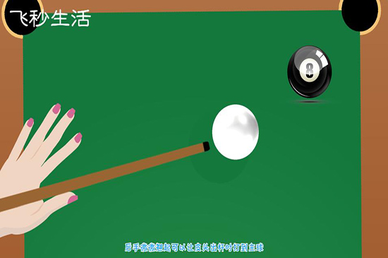 左手手指成三角形的支架,食指弯曲并且收回,后手稍微抬高,出杆时尽量将动作幅度减小,以免出杆晃动不稳击球不准的情况。