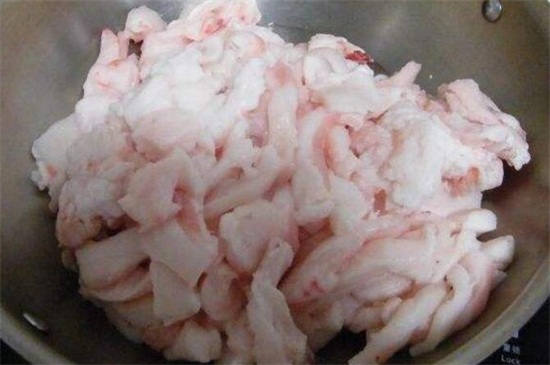 在炼制猪油的时候,首先将新鲜买来的猪肥肉清洗干净,再将其切成小块,之后在锅里放入适量的冷水,此时要将火调到最大,将清洗干净的猪肉快放入锅中翻炒,并隔几分钟就要翻炒一下,以免粘锅。