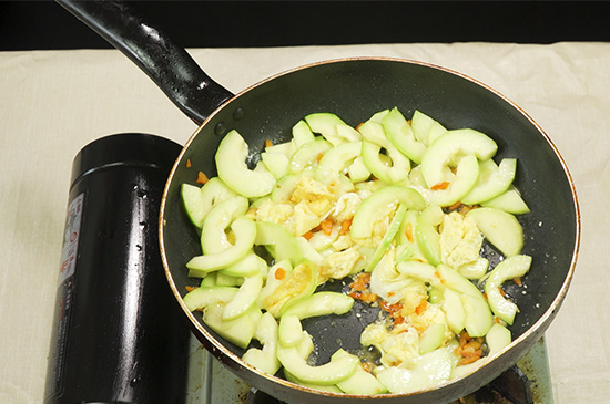 4、最后倒入炒好的鸡蛋炒至完全熟,加入适量鸡精调味后,美味的西葫芦炒鸡蛋就做好了。