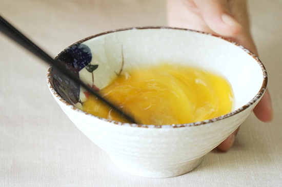 2、起锅烧油,油热后放入鸡蛋液煎成蛋饼,再捞出切碎备用。