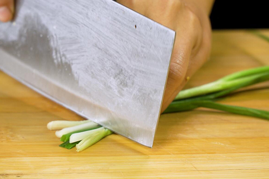 2、干辣椒对半横切,生姜切片,洋葱切片,葱切段备用。