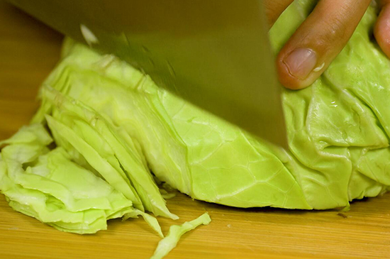 准备食材:卷心菜、猪肉、植物油、食盐、蒜瓣、干辣椒、生抽。