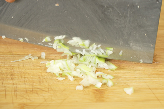 3、切好的葱末、姜末、盐、酱油和五香粉搅拌均匀,同时起锅烧油,油热后放入鲜花椒炸香,再取出花椒不要。