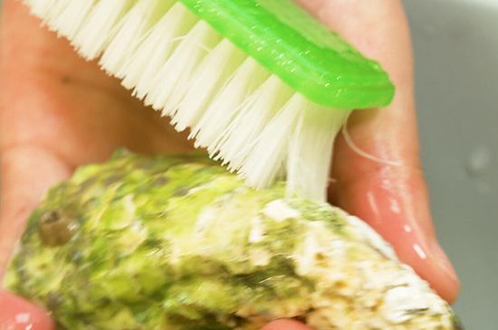 1、将每个生蚝用刷子刷洗干净,小葱、蒜剁碎以作备用。