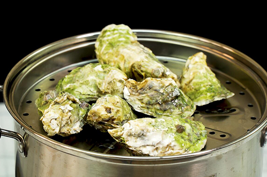 4、把洗净的生蚝放入水烧开的锅内大火蒸制5分左右。