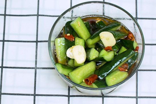 准备食材:黄瓜、生抽、白砂糖、蒜、干辣椒、食盐、醋、香油、麻油。