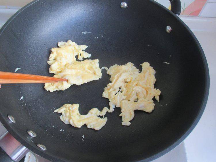 5、锅中放适量油,放入鸡蛋划散后盛出。