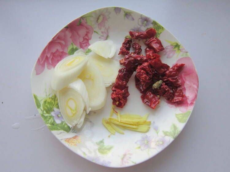 3、辣皮子泡泡洗净切末,大葱切片、姜切末。