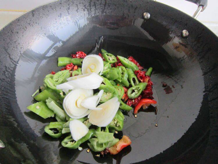 最佳答案:材料:尖椒、肥牛、洋葱、植物油、盐、花椒粒、胡椒粉、姜、辣皮子、生抽、鸡精。尖椒洗净切块,辣皮子洗净切末,大葱切片、姜切末。把煮锅加水烧开,下肥牛煮开捞起沥干水分。热锅凉油,油热8成,下花椒粒、辣皮子、姜炒出香味。下尖椒,大葱翻炒出香味。