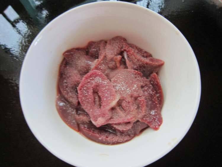 1、鹅肝切片用细盐抓匀腌5分钟后冲干净。
