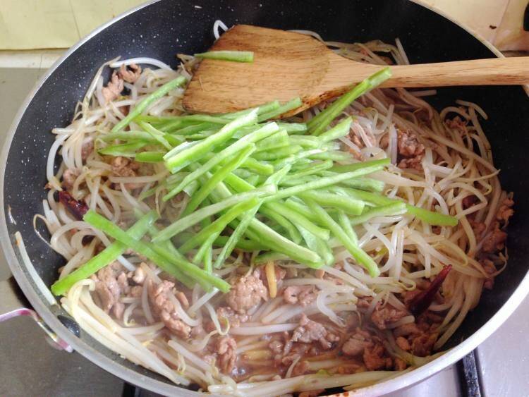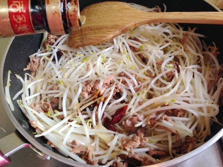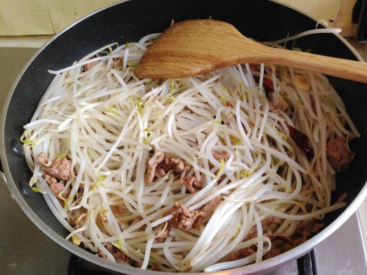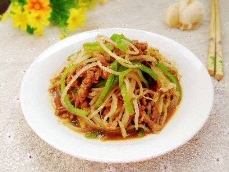 最佳答案:青椒切丝,瘦肉切丝,放入少量盐、老抽、料酒腌制10分钟。葱姜蒜和辣椒分别切片,豆芽摘洗干净。锅内加油烧热,放入葱姜蒜和辣椒炒香。放入肉丝,快速翻炒,放入绿豆芽翻炒。炒至豆芽稍软时,放盐、五香粉、老抽翻炒均匀。炒至豆芽八九成熟时,放入青椒翻炒,炒至豆芽完全熟透即可。