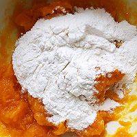2、南瓜去皮切薄片,上锅蒸熟,加糯米粉。