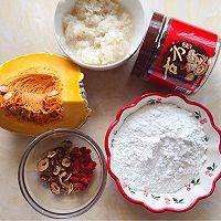1、准备材料:南瓜100克、糯米粉100克、红枣片1把、枸杞适量、酒酿半碗、红糖2块。