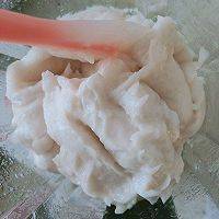 3、鱼泥中放入玉米淀粉、盐、糖、胡椒粉、蛋白、味精,搅拌均匀。