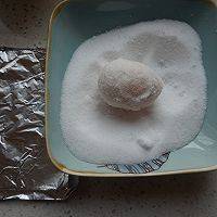 4、将鸭蛋从酒里拿出来不用擦,连着酒水滚上一层盐。