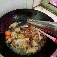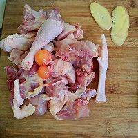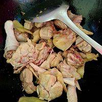 4、热油锅爆香姜片,下鸡块炒至断生。