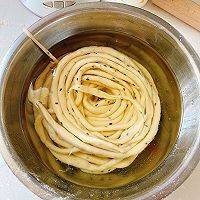 最佳答案:准备材料:面粉300g、鸡蛋1个、水120ml、黑芝麻适量、盐3.5g。鸡蛋、水、盐搅拌融合后加入面粉、黑芝麻,揉面至两面光滑。揉好的面团盖上保鲜膜醒一小时,再用擀面杖擀薄。切成长条,两头不要切断。撒一点面粉将切好的面分开搓细。