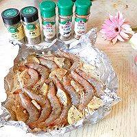8、虾上挤上柠檬汁,撒上五香粉、椒盐粉、孜然粉、罗勒碎、欧芹碎。