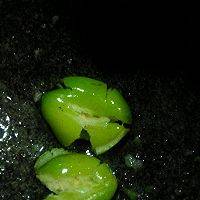 3、用臼子捣青橄榄,正反各锤一下,使其裂开,到核肉不分离。