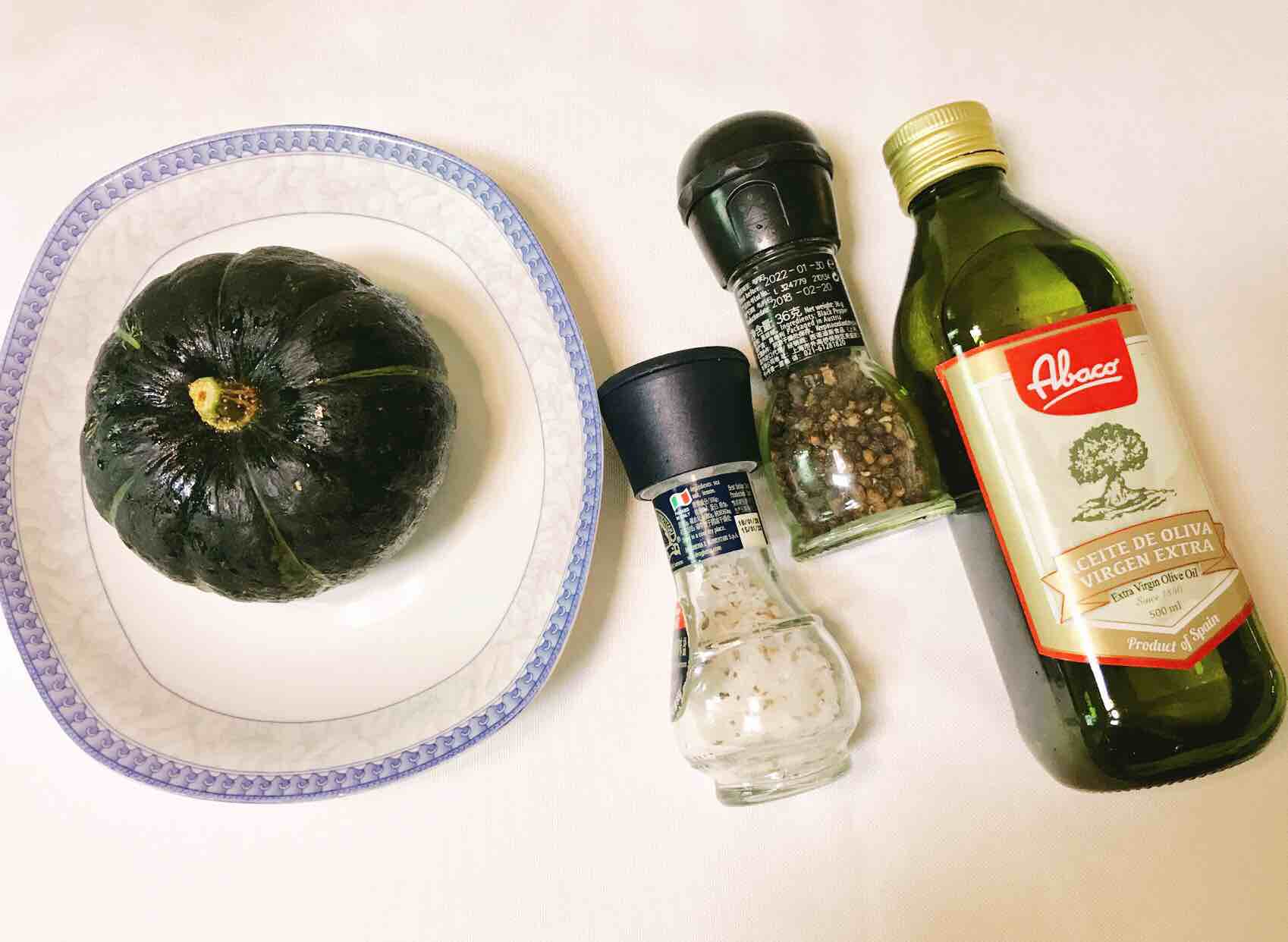 1、准备材料:贝贝瓜1个、橄榄油2勺、盐适量、黑胡椒粉适量。