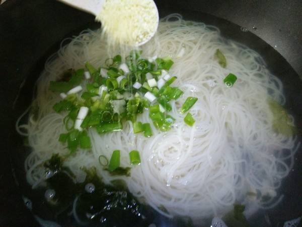 最佳答案:准备材料:钢丝面适量、葱花适量、香菜末适量、紫菜适量、虾皮少许、盐1勺、鸡精1勺。钢丝面提前一晚用水浸泡,香菜和小葱切末。锅中烧开水,放入紫菜和虾皮,下钢丝面。放葱花、盐和鸡精,加香菜出锅即可。