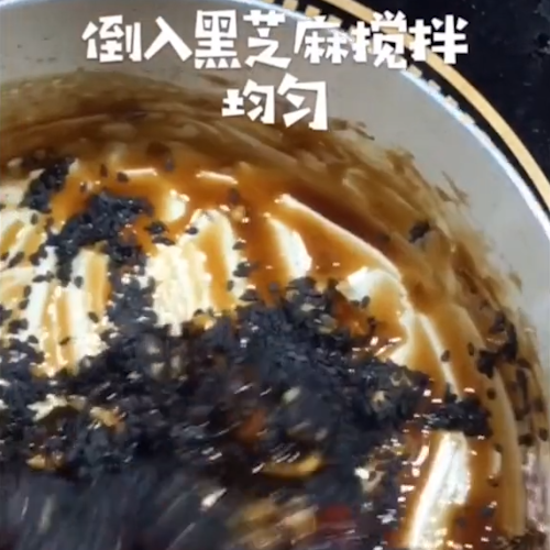 7、倒入黑芝麻、核桃,翻炒均匀。