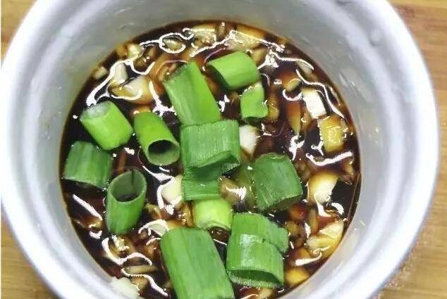 6、用葱、蒜、生抽、陈醋、盐、白胡椒粉调出酱汁。