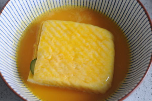 7、放入鸡蛋液中,稍微停留下,让吐司吸收更多的蛋液。