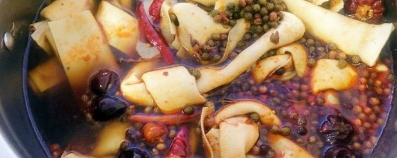 最佳答案:准备八角,花椒,麻料,干辣椒若干。料酒三勺,老抽两勺,生抽4勺,盐一勺,辣椒油、老干妈适量。豆皮对半切,打结后铺在锅中。水煮沸后,继续煮20分钟。放在卤汤中浸泡一晚即可。