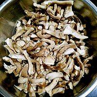 2、干香菇脚用盐水泡发洗净,去除杂质后晾干。