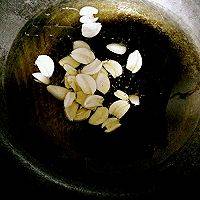 4、油下锅,五成热放入切半的大蒜,爆香。