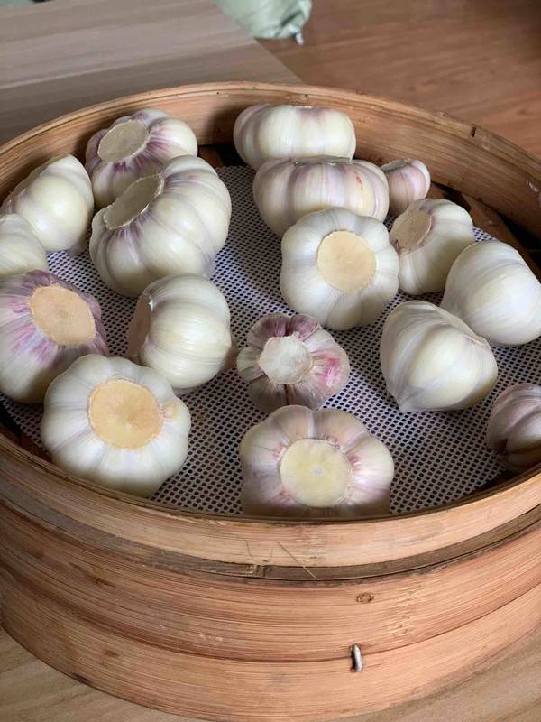 3、第四天把蒜头拿出来,倒放,让蒜里面的水都滴出来,静置一夜,直到水分风干。