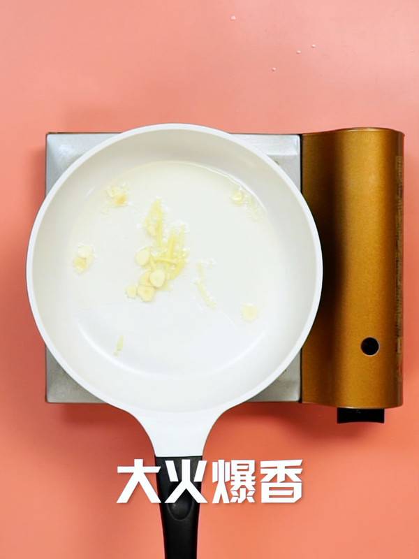 3、锅中倒油,放入姜丝、蒜片,大火爆香。