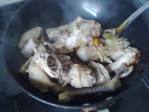 8、待锅中还剩一碗水的时候,加入适量盐,大火收汁即可。