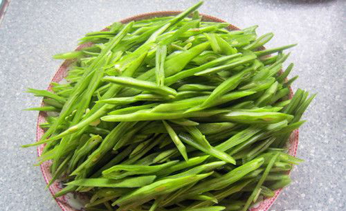 2、扁豆角洗净控干水分并切成细丝。