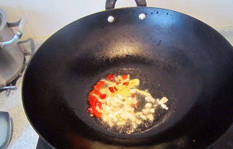 5、炒锅加热放油,放入几颗花椒爆香,随后倒入作料翻炒几下炒出香味。
