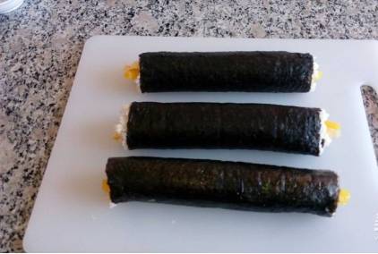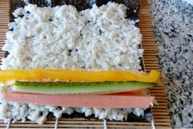 最佳答案:准备材料:紫菜3片、米饭2碗、寿司醋20克、火腿肠1根、鸡蛋1个、黄瓜半条、寿司萝卜3条、盐2克、胡萝卜半根。鸡蛋打散,摊个鸡蛋饼,切丝备用,所有食材切条。米饭拌寿司醋和盐,紫菜麻面朝上,放上米饭铺五分之四。放上食材卷起,紫菜边抹水粘合,全部卷好后切片即可。