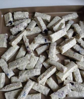 9、放置尚有余温时,利刀切块,彻底放凉后包糖汁即可。