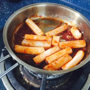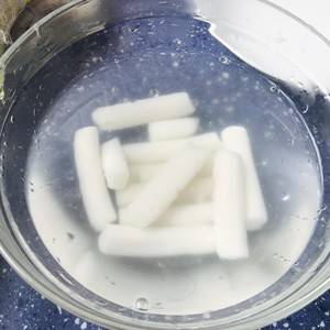 2、水完全沸腾以后加入年糕,大火煮2分钟。