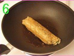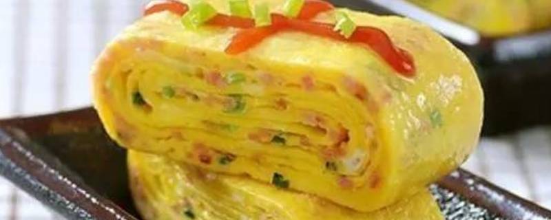 7、再从卷好的这一端开始,和之前一样用铲子卷起,如此反复,直到用完所有的蛋液,最后切块即可。