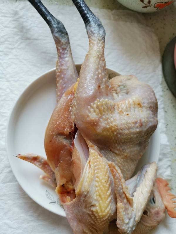 3、老母鸡一只,切稍大块,放入清水中浸洗三次捞出。