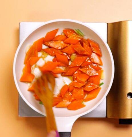 最佳答案:准备材料:姜5克、蒜4克、葱5克、胡萝卜1根、白砂糖5克、食用油5克。胡萝卜刮皮去蒂切片,锅中烧开水,倒入胡萝卜片,焯水1分钟。锅中倒油,倒入蒜片、葱段、姜片,大火爆香,倒入胡萝卜片、盐、白砂糖、鸡粉、生抽,翻炒均即可。