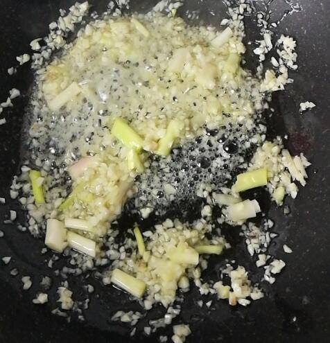 2、锅中放油,下入葱姜末,葱白段煸香。