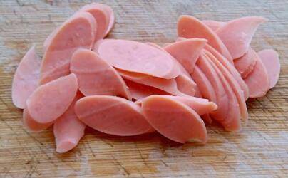 2、火腿肠切片,备好。