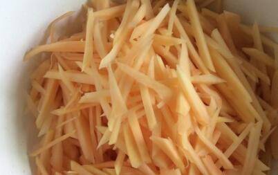 2、将木瓜切成細丝备用,鸡蛋打成蛋备用。