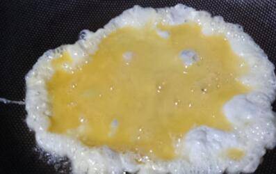 3、热锅下油,下鸡蛋,成型。推至锅边。
