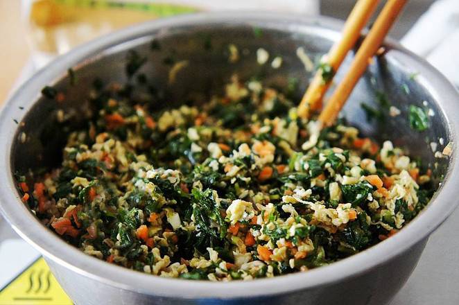 最佳答案:准备材料:刺五加叶300克、毛葱2个、胡萝卜半根,油、盐、五香粉、胡椒粉、蚝油各适量。刺五加叶摘洗干净。锅中加水,水开后滴几滴油,下刺五加叶焯水,沥干水分,切碎备用。葱、胡萝卜去皮洗净切碎,取大盆,加入准备好的所有食材,加入适量盐、五香粉、蚝油、胡椒粉、蘑菇粉,拌匀即可。
